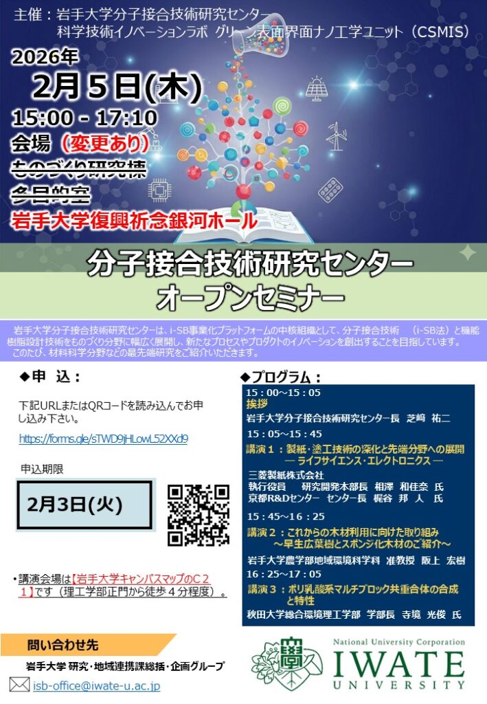 (会場変更)【2026.2.5(木)開催】分子接合技術研究センターオープンセミナー