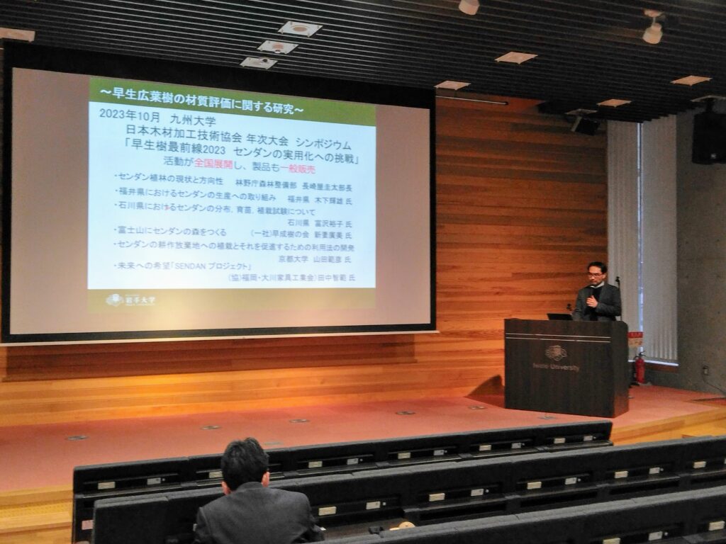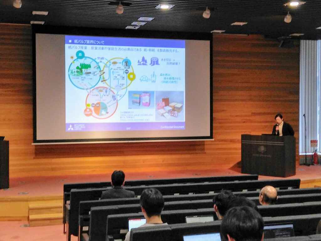 製紙・塗工技術や先端分野への応用、早生広葉樹とスポンジ化木材の活用方法、ポリ乳酸系マルチブロック共重合体を使用した医療用素材等をテーマに材料科学分野についてご紹介いただきました。
